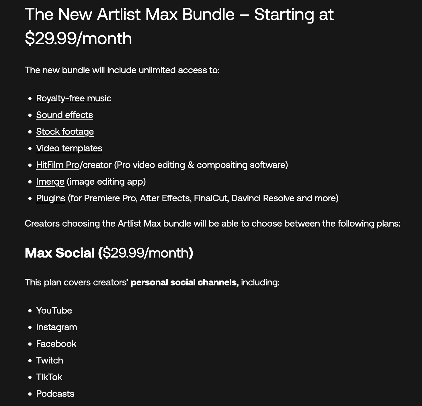 Last year I wrote about stock footage. In that post I wrote about Artgrid, using stock footage and why I decided to cancel my account. Flash forward to December 2022 and I am upgrading my Artlist account (royalty free music and sound effects) to an Artlist Max Social account. This reads like an advertisement but I assure you it is not.