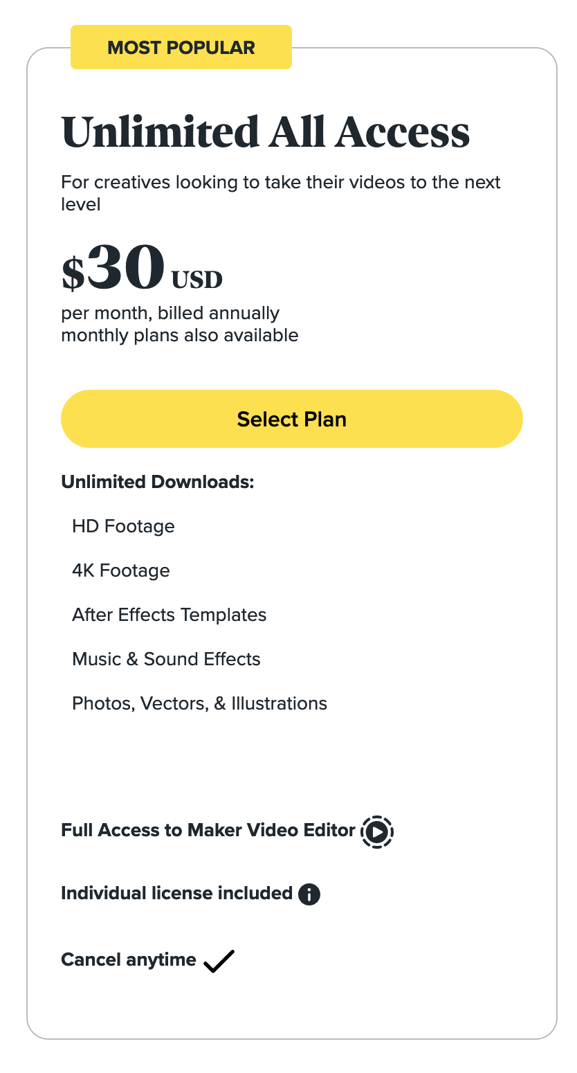 Because my yearly cycle begins/ends in February I was prorated when I made this change to my account. Looking at the website the cost will be either $360 a year for the social plan (which is what I have) or $480 for the pro plan. So given that I was spending $300 a year for access to music and sound effects, this is a pretty good deal for me. I pay $60 more a year and I now have access to all of their footage. In addition to that they have templates for Final Cut Pro X, LUTs and plugins (in the above video I used some of their transitions).