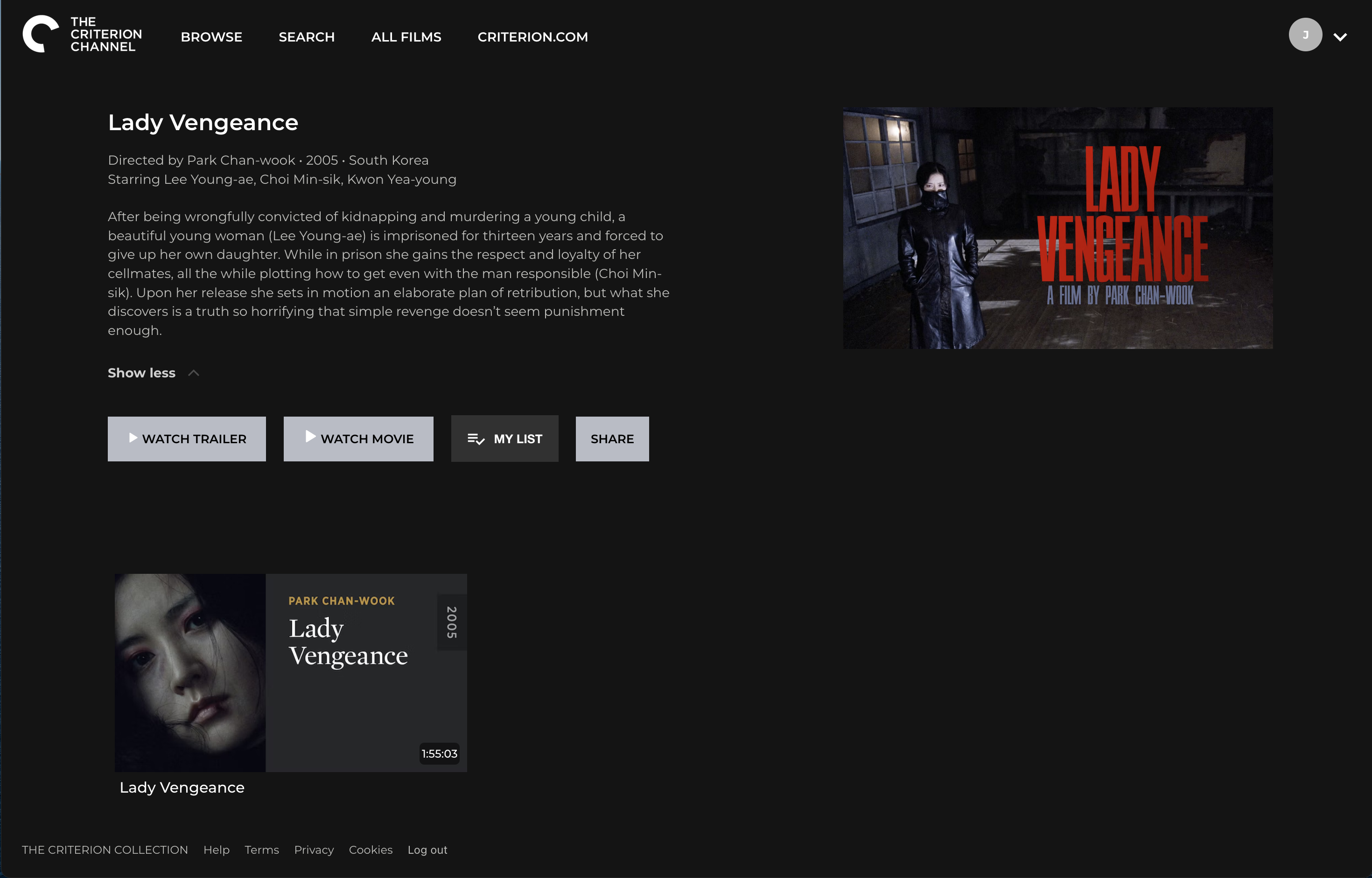 I’d like to conclude with a comparison of how the two services handle the presentation of the same film. I give you: Lady Vengeance.