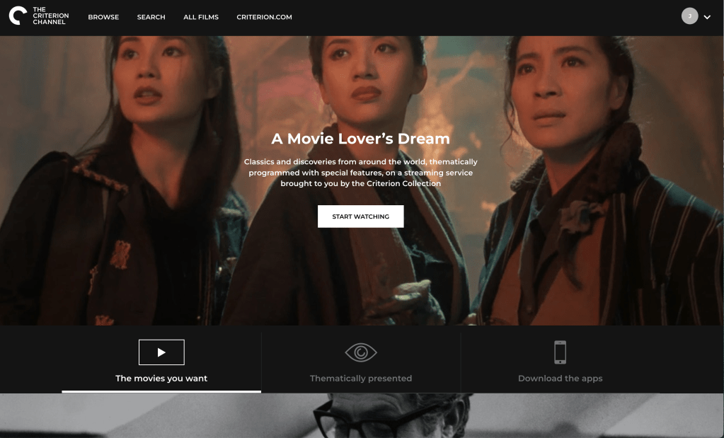 To say I prefer this design and interface is an understatement. They’ve managed to make it welcoming, packed full of useful (and familiar) features, but also convey that this is a place to watch movies. If you look at the screen recording below you will see that what they do with their site is similar to The Criterion Channel (many different categories, the carousel display). To me, because of how it is designed and interacts with the mouse, I find it helpful and not overwhelming.